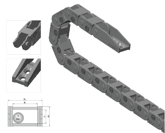 2.可將拖鏈內外側擋片打開,方便檢查或更換電纜;